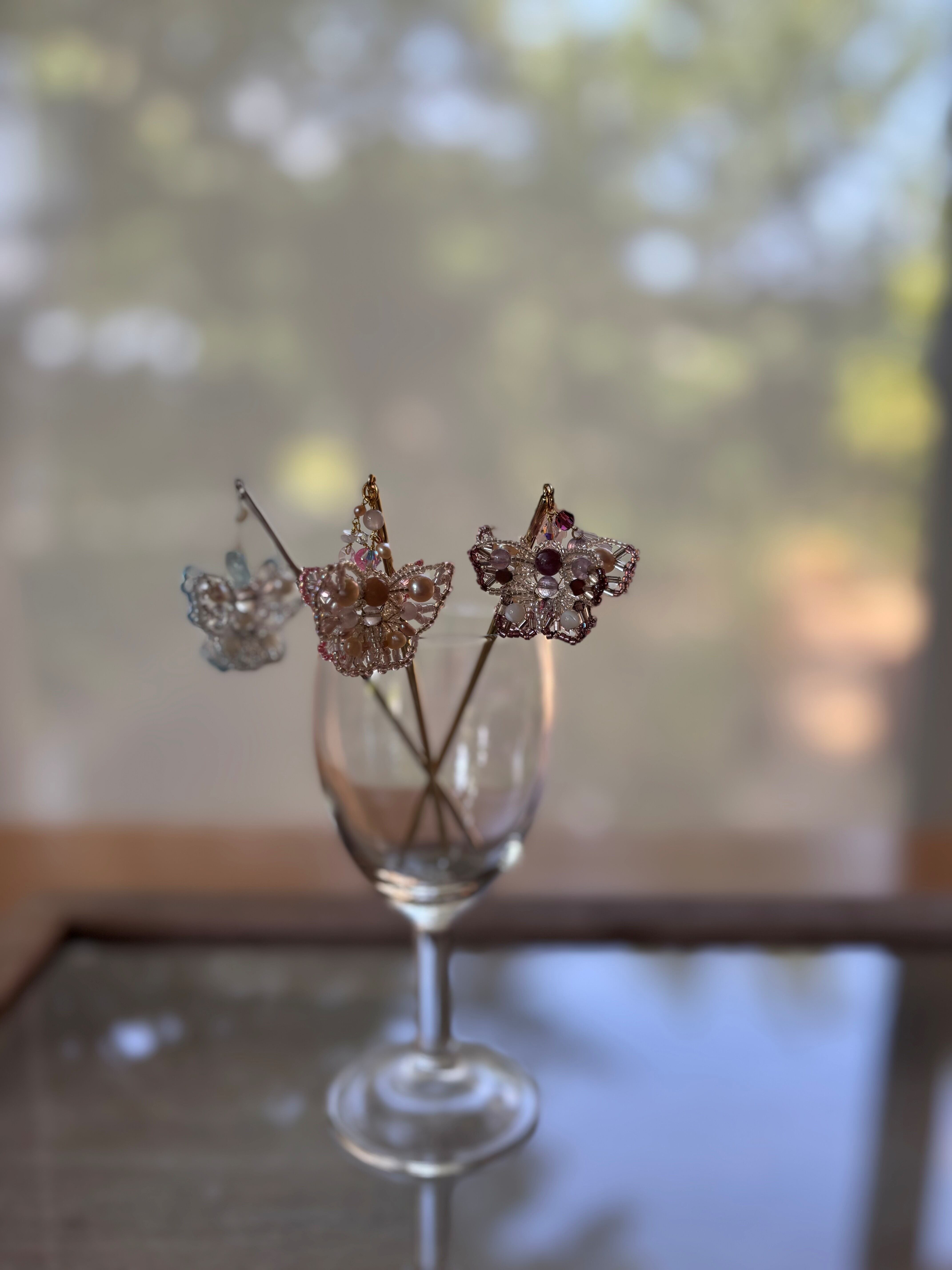 ■天然石他:アメジスト、淡水パール、白蝶貝、スワロフスキー、ガラスビーズ