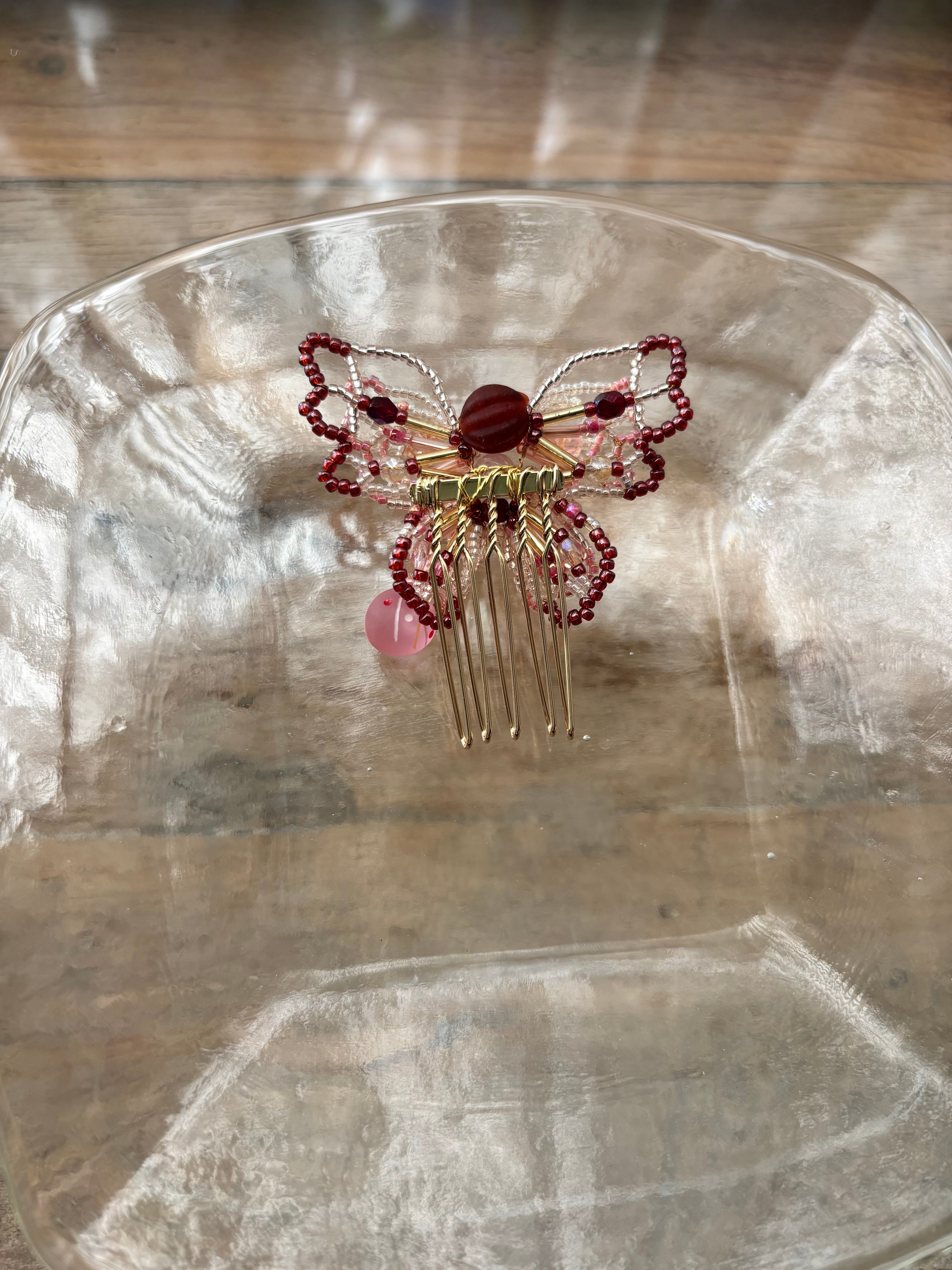 夏祭りの蝶のコーム【紅色】